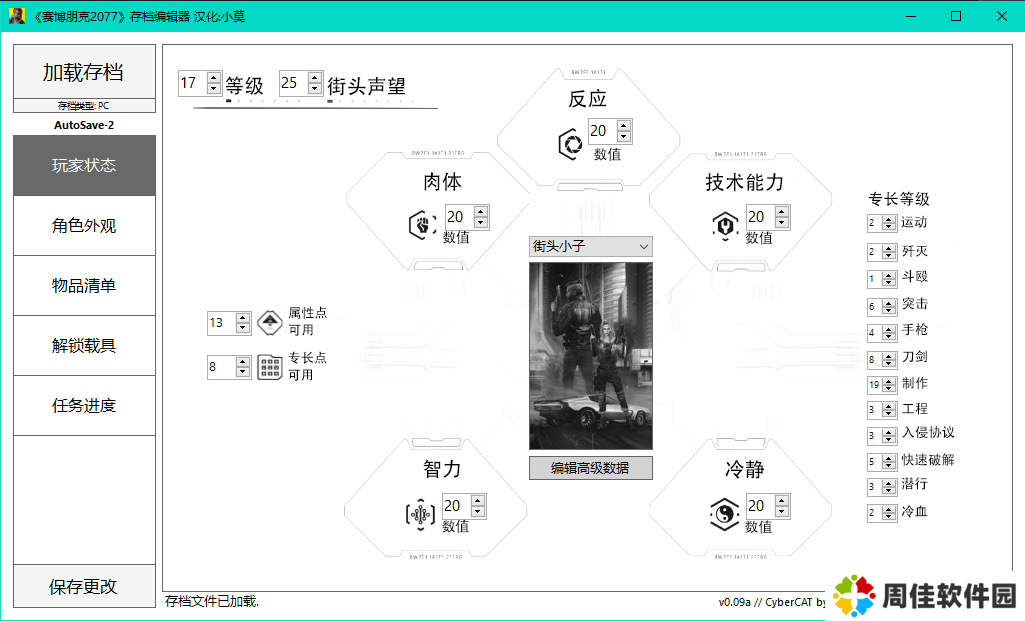 赛博朋克2077存档编辑器下载-赛博朋克2077存档修改器中文下载