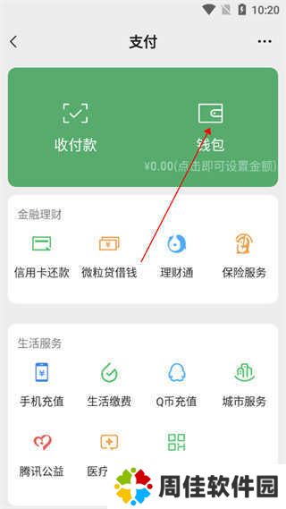 1、打开软件,选择要微信钱包;