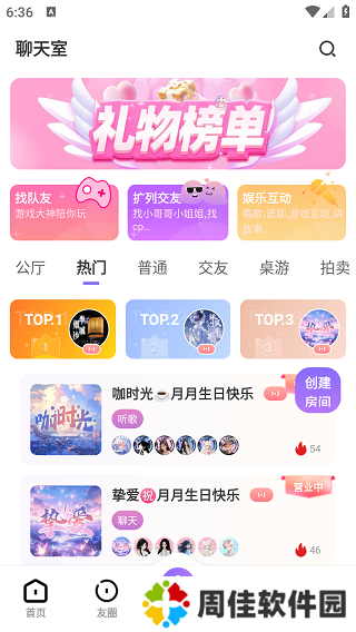 3、聊天室,找队友,一键最新的房间,多样交友方式等你看;