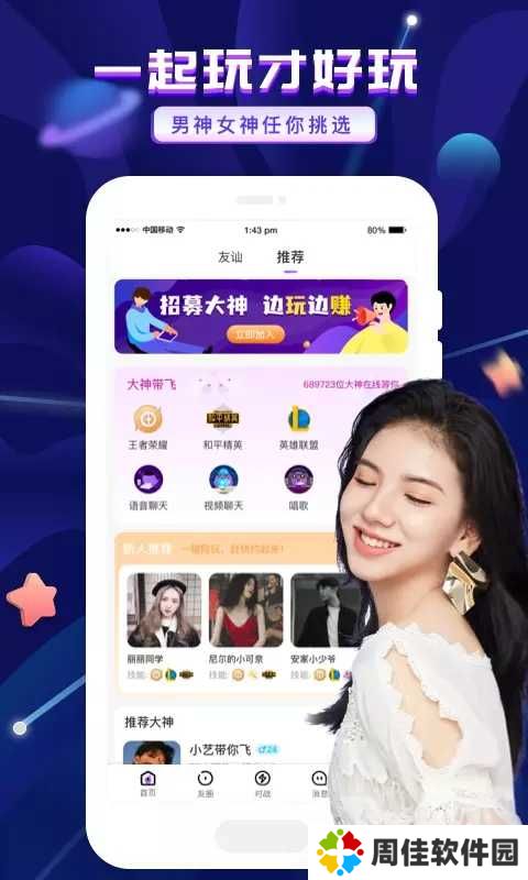 3、 美女帅哥在线陪玩,热门游戏应有尽有;