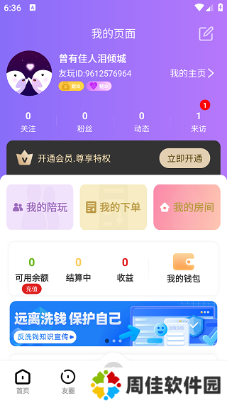 1、在本站下载安装并打开友玩陪玩app,登陆后进入软件,点击进入我的页面,在这里找到我的陪玩。
