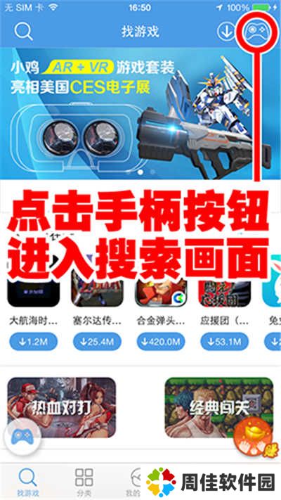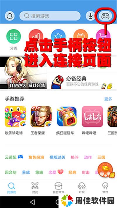 c、页面切换后,点击屏幕上的【连接小鸡手柄】进入手柄搜索页面;