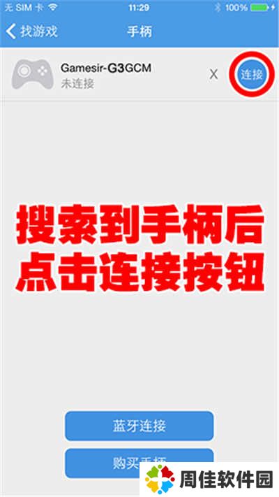 e、搜索成功后,点击【连接】,连接成功后手柄会震动,【苹果指示灯】呈常亮状态。