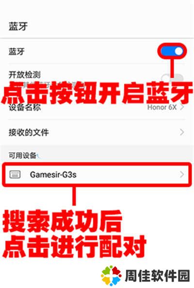 b、开启安卓设备的的蓝牙功能,搜索到名为【Gamesir-G3/G3s】的设备后,点击进行配对连接;
