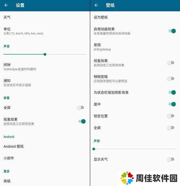 5、动态壁纸 – 桌面上显示YoWindow动画天气。
