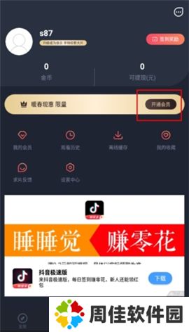 3、其中比较方便的途径就是签到和看广告了,这些在任务中心中可以找到。每次打开之后看看广告就可以快速累计金币了。不需要花钱就可以免费获得会员。