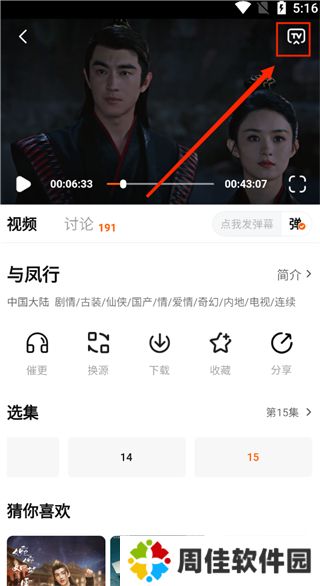 1、打开小柿子app,找到想投屏的影视进入播放界面,例如与风行。