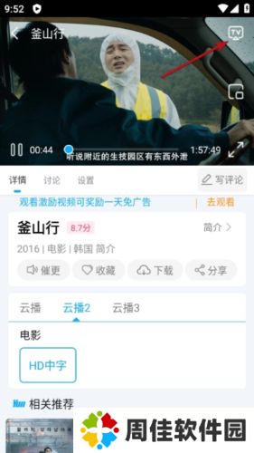 3、在播放的时候,我们可以看到右上角的TV图标,点击就可以开始投屏了。