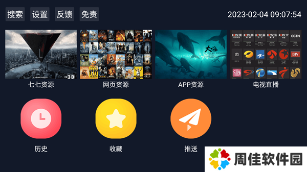 主要就是七七资源、网页资源、app资源、电视直播、历史记录、收藏和推送。