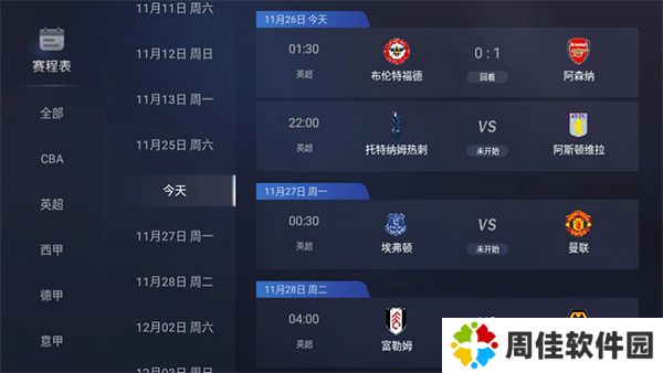 4、进入赛程表界面可详细查看每场比赛的时间,在赛程表下方还能再次切换比赛项目。