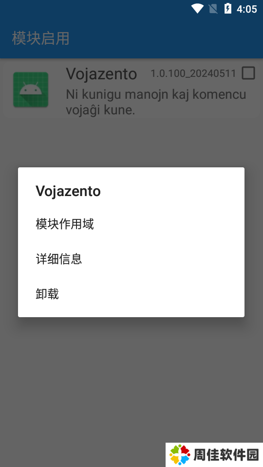 接下来,安装Vojazento软件。这是一款基于Xposed框架的模块管理工具。