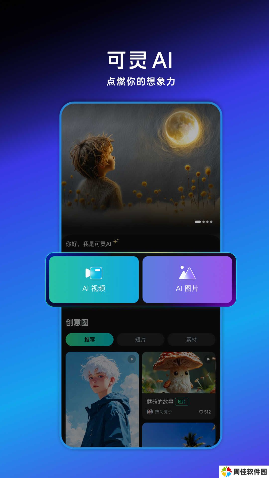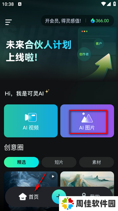 4.在【首页】可以看到AI视频以及AI图片功能,可根据需要选择对应的功能