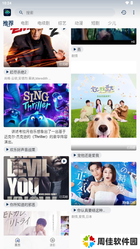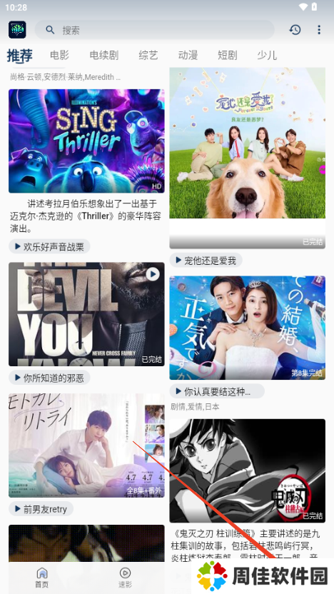 5.这里还有影视推荐功能,通过刷短视频的形式获取一些短篇内容;
