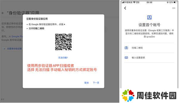 5、第五步.打开手机安装的Authenticator APP,通过扫码或者选择“无法扫码”手动输入秘钥。