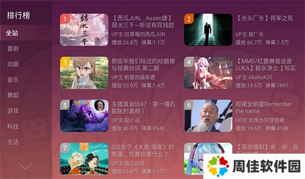 哔哩哔哩电视版软件基本保留了与常版本相同的功能。查看各种影视剧和动漫,还可以根据音乐、舞蹈、游戏、知识、科学的不同分类,查看up主投稿的自制视频作品。软件中的视频还支持弹幕功能,保留了全版本中b站视频的历史弹幕和即时弹幕查看。