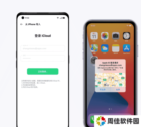 -苹果手机上的iCloud账号登录请求弹窗,选择“允许”,然后在OPPO新手机上填写iCloud的验证码,即可连接成功;