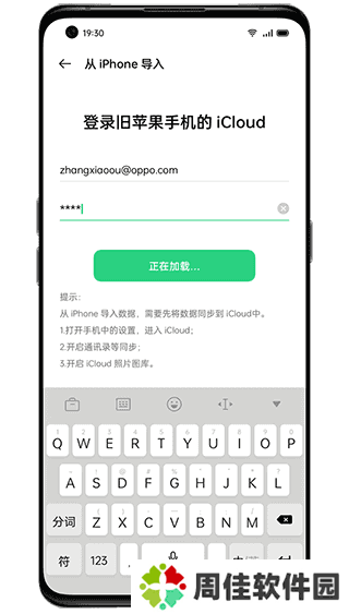 -在OPPO新手机上进入app,并选择“从iPhone导入”,然后输入苹果手机的iCloud账号和密码;
