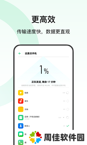 3、【核心数据全迁移】支持迁移联系人、短信、照片、视频、音乐、文档、已安装的应用等多项数据