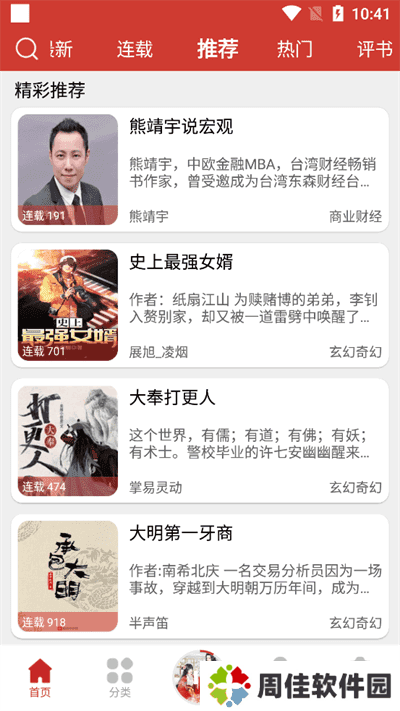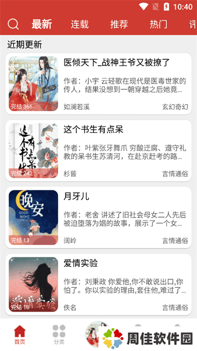 4、如果上首页的分类推荐里没有你感兴趣的内容,可以前往“分类”功能栏里,按照自己喜欢的标签进行作品搜索,如图: