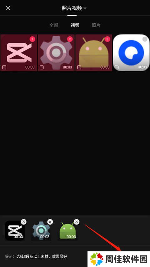 2.选择添加想要添加人工语音的视频或者图片.