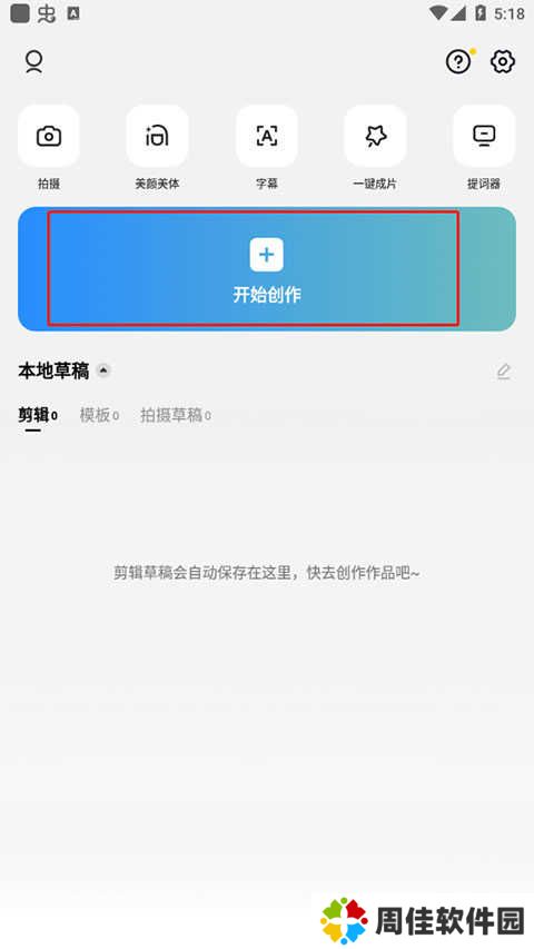 4、返回到剪映首页,然后点击开始创作