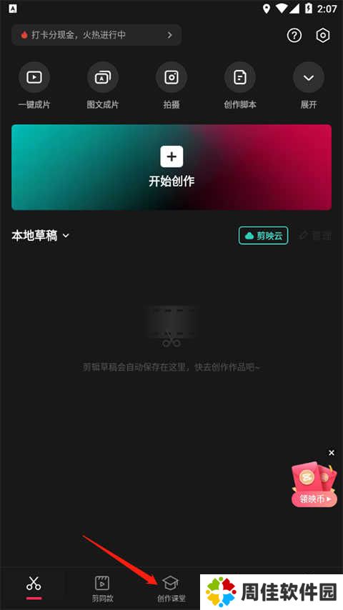 1、先下载打开剪映安卓版后,点击创作课堂