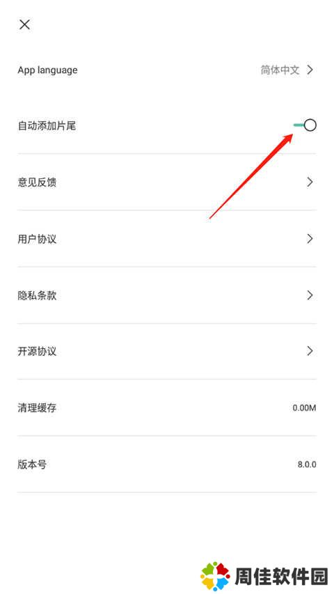 3、将【自动添加片尾】右侧的开关关闭即可.