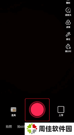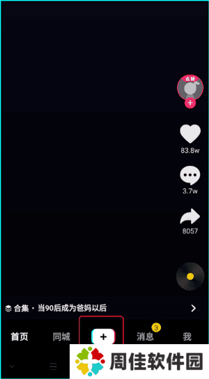 打开抖音极速版,点击下方的“+”号功能选项,进入拍摄短视频的页面。
