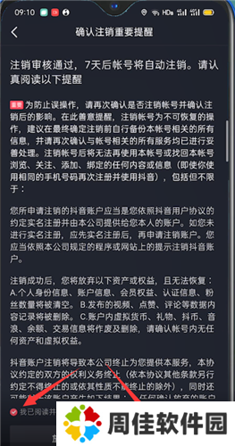 8、勾选我也阅读并同意抖音注销须知,点击确认注销,