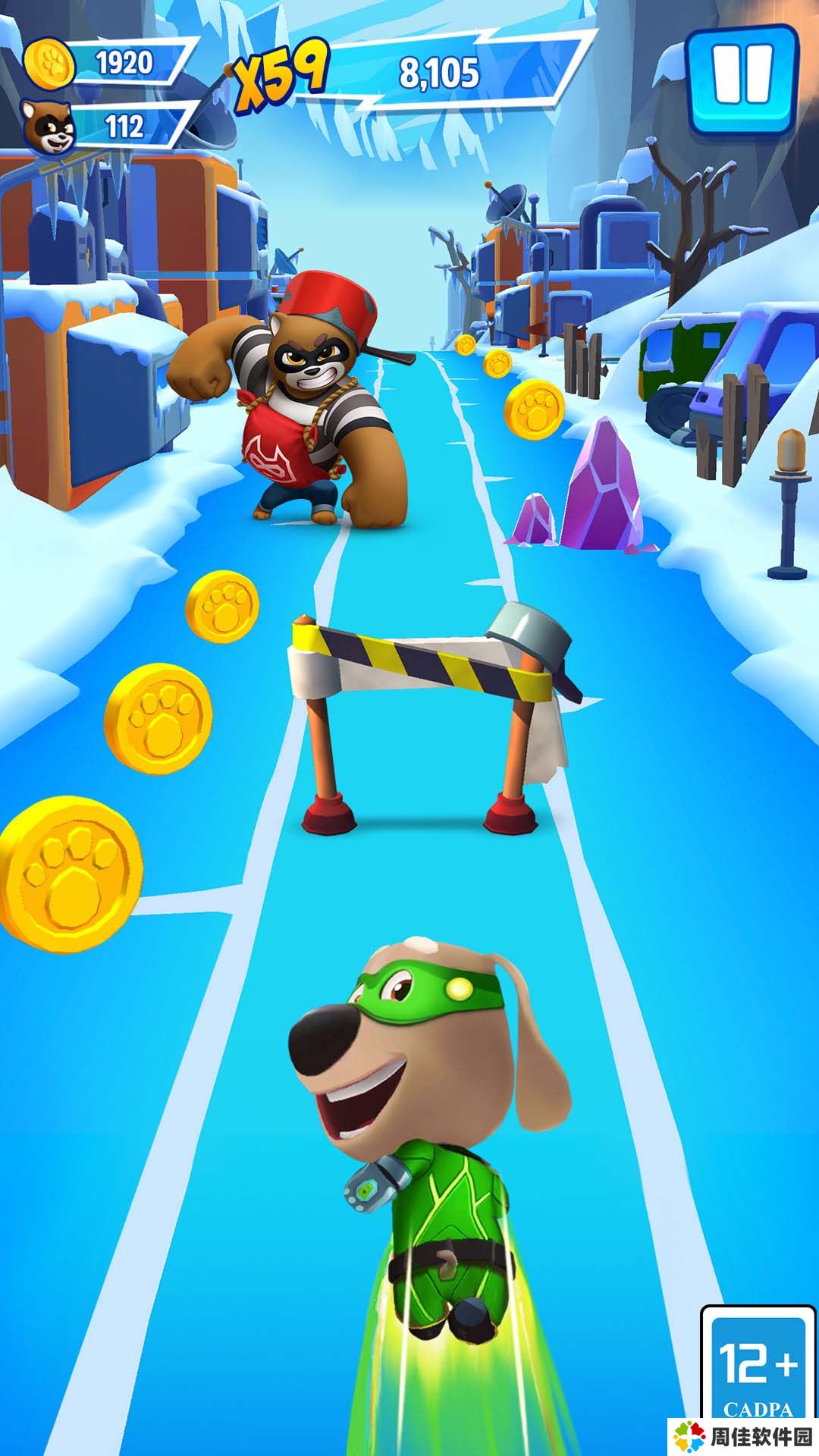 3、在游戏中的跑酷道路上面有大量的金币,玩家需要将他们全部收集起来获得高分。
