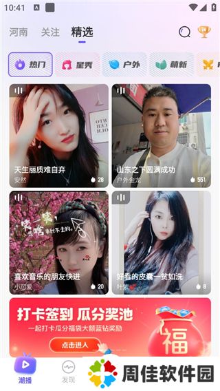 抖蓝直播手机版专为不同的才艺颜值主播提供了丰富的直播板块,户外直播、美女直播、热舞直播等应有尽有,还有更多好玩的直播内容等你来体验。