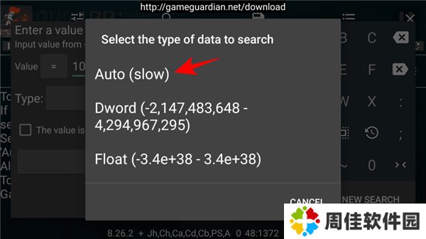 7、或者可以选择Auto 让GG 修改器自己搜寻游戏内可以修改的参数。