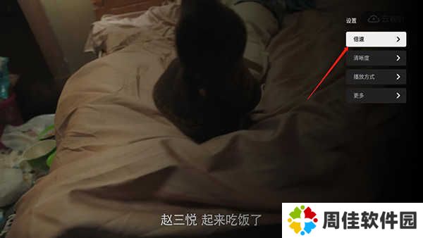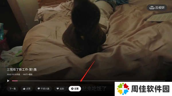 1、先任意打开一个视频,然后点击遥控器的菜单,弹出后选择设置;