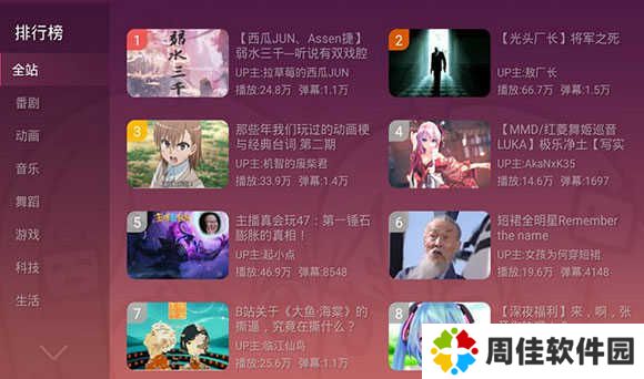 首先,我们来看TV版的界面,目前顶部导航只有七个[我的 精选 番剧 国创 电视剧 电影 纪录片]个人关注的UP主视频暂时无法直接使用TV客户端观看。