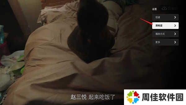 进入播放页面,然后通过按电视遥控板的方向键下,可以调出功能列表,从列表里选择“清晰度”的选项,就能够调整视频当前清晰度了。