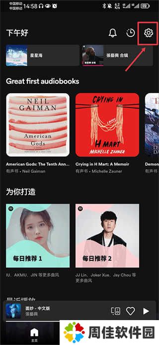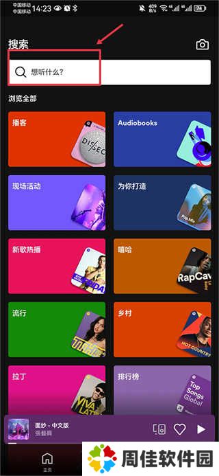 1、在本站下载安装好打开spotify后,在搜索页面中输入歌曲名字或者艺人名字;