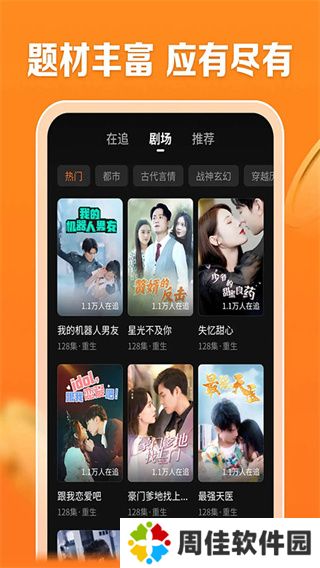 速看剧场手机版app里为用户提供的短剧资源十分丰富,且还涵盖了非常齐全的短剧题材,包括古装、现代都市、逆袭等等,所有你想看的这里都有。