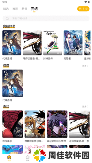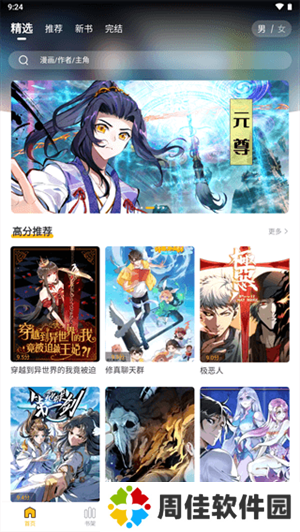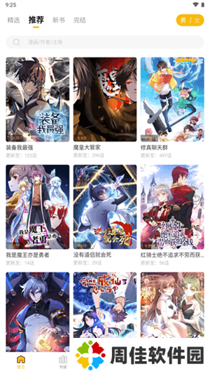 2、选择好性别好首页会自动推荐一些相关的漫画资源;