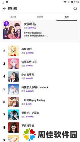 5、点击排行榜,有上升榜、新作榜、总榜供大家选择,不知道看什么漫画的时候可以选择这里的哦。