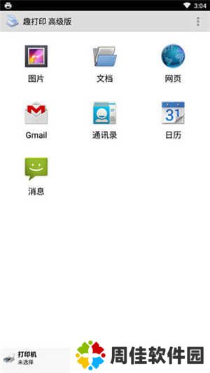 1、打印机设备都正常连接后,即可点击文件,在主页面中我们选择打印文件的类型,可以是图片、文档、网页、邮件、通讯录、日历、短信通话记录。