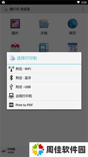 2、可通过WiFi、蓝牙、USB或互联网选择打印机;