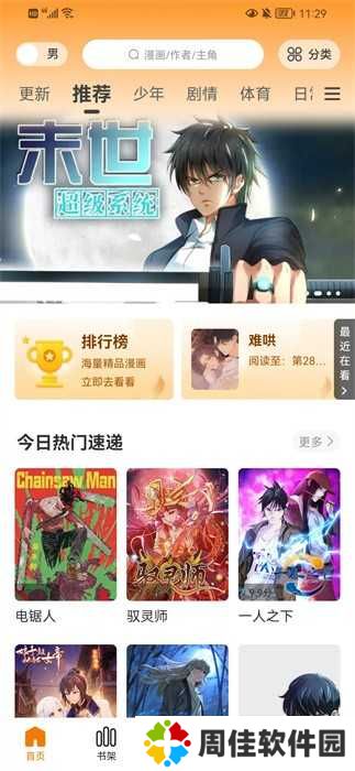4. 软件分类明确,各种类型的漫画容易选择,界面非常简单;