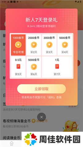 4、每天看剧达到一定时间可以获得金币,累积到一定数额就能体现,新人朋友还有七天签到福利。