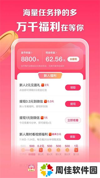 4、看视频,领红包,边玩边赚,更多福利惊喜等你解锁。