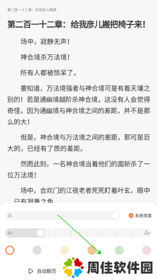 2、进入小说页面后,点击中间位置打开设置面板,点击右下角的设置