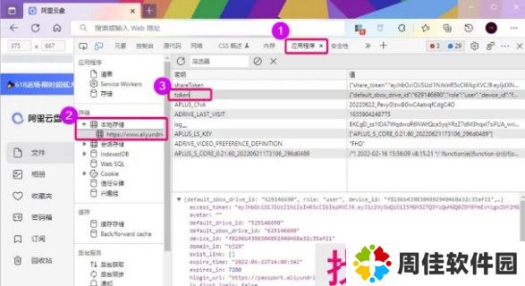 3,登录成功之后,按下键盘上的F12键 (或者ctrl + shift +i),打开‘开发人员工具’。然后,依次点开:应用程序(Application)→ 本体存储(Local Storage)→ token。点开 token 之后,找到底下的 reflash_token。在 reflash_token 后面有一串代码,那就是 token 值。