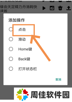 5、点开编号键,选择第一个“点击”的选项,缘由天定只需要这一个操作键,每个编号都这样设置