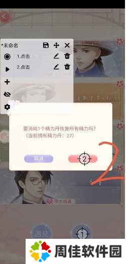 7、继续点击操作选项,编号2会出来,将它放在提示消耗精力丹的确定选项上,不知道放哪的话可以点开一下,找一找位置。