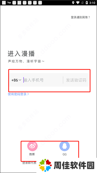 漫播app使用指南1、首先进行账号登录,支持使用手机号、微博、QQ三种登录方式;
