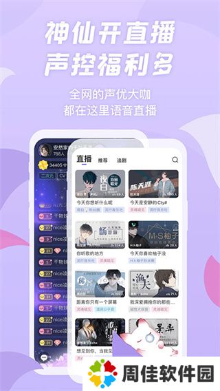 漫播听剧app里还汇集了海量的声优阵容,还有全网著名的声优大咖,都将在这里进行语音直播,这也是声控的一大福利。